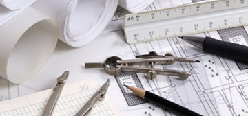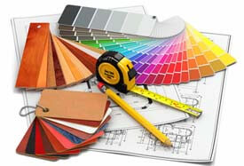 interior design. Architectural materials tools and blueprints